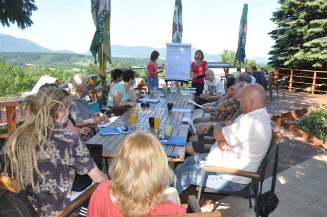 V cca 14.00 hod. je plánován návrat do areálu Horizont, kde bude workshop pokračovat 1,5 denním školicím programem, založeném na stručném představení problematiky, hledání řešení modelových úkolů případové studie v pracovních skupinách a následném srovnání a diskusi k výstupům jednotlivých skupin.